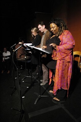 Ann Mortifee, Martin Julien and Jenni Burke, with Zachary at the piano